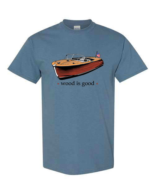 Are you a wooden boat lover? Our ever popular “wood is good” t-shirt puts a smile on everyone’s face. Order your t-shirt and enjoy the wood.